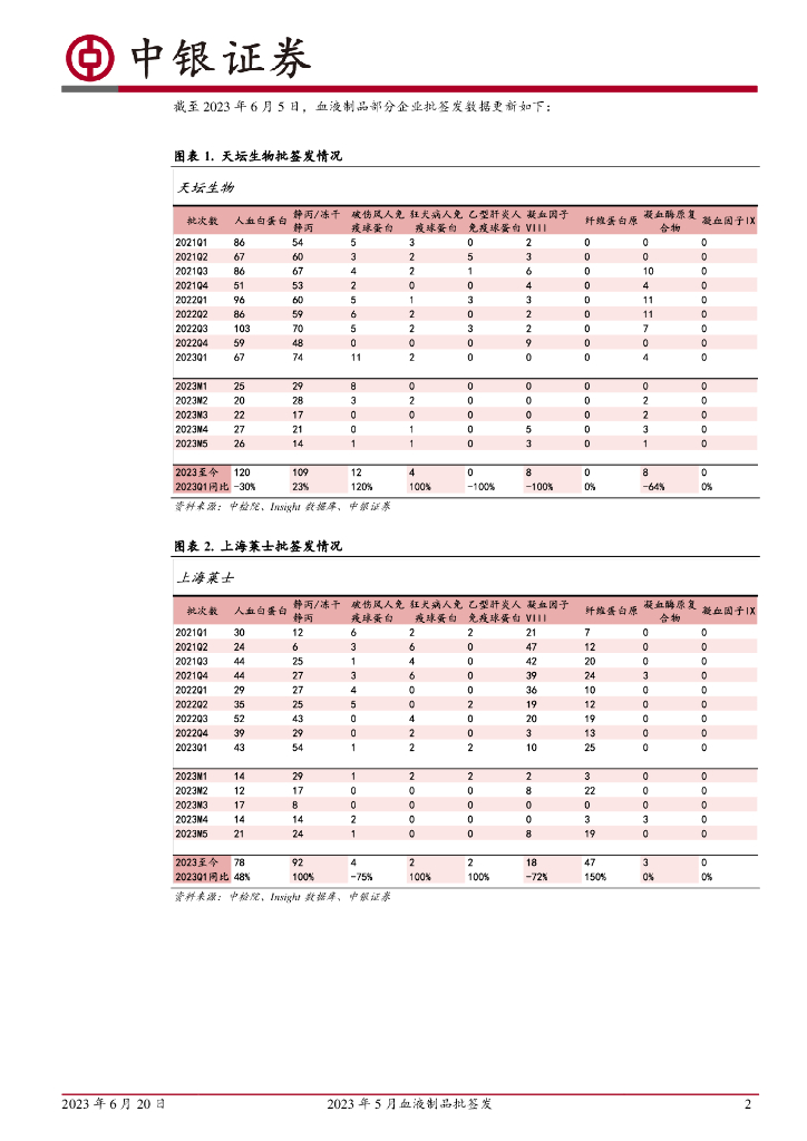 中银证券:2023年生物制品批签发跟踪:2023年5月血液制品批签发.pdf