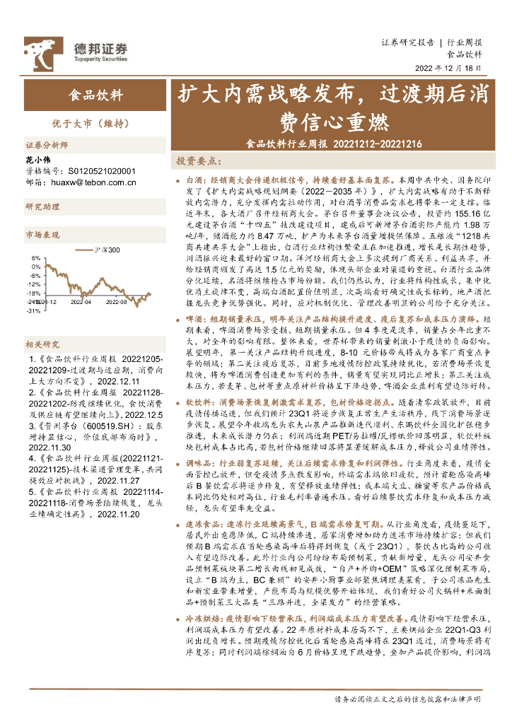 德邦证券:食品饮料行业周报:扩大内需战略发布,过渡期后消费信心重燃.pdf