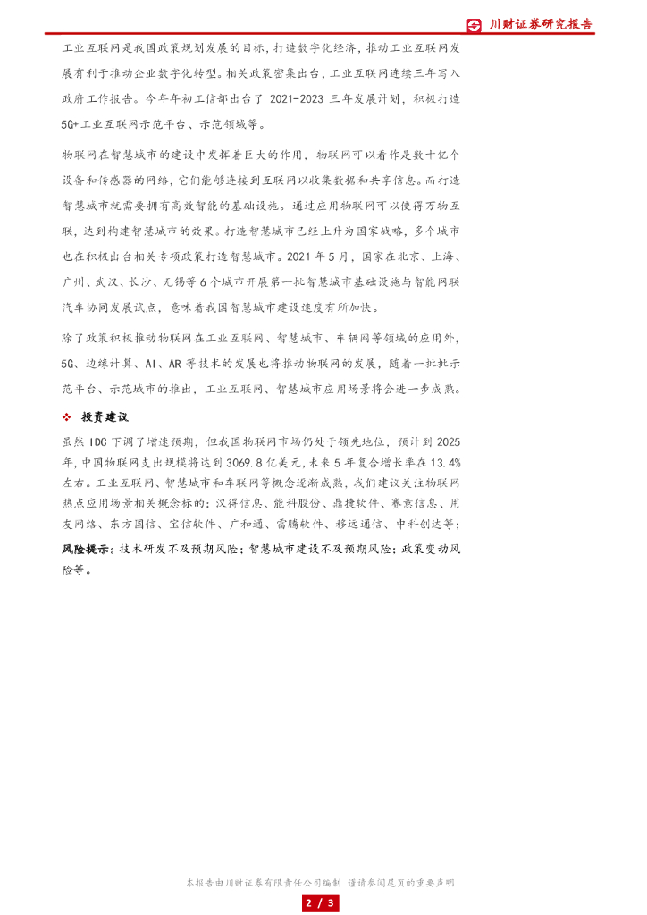 川财证券:高端制造行业事件点评:工业互联网、车联网和智慧城市助力物联网规模继续扩大.pdf