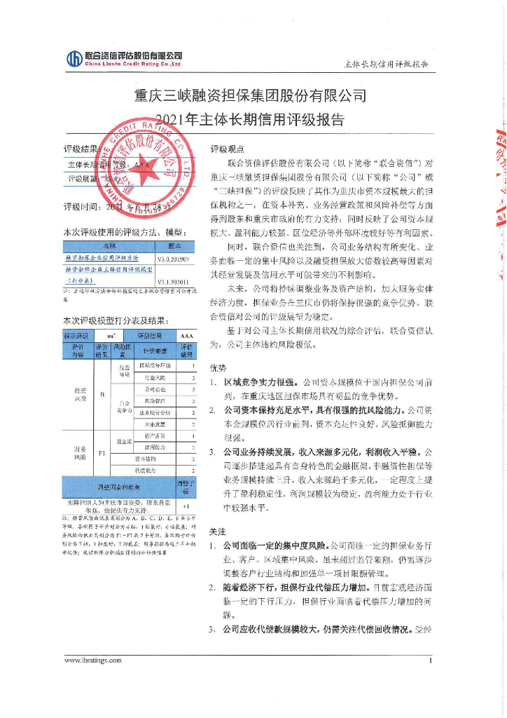 联合资信:重庆三峡融资担保集团股份有限公司2021年主体信用评级报告及跟踪安排.pdf