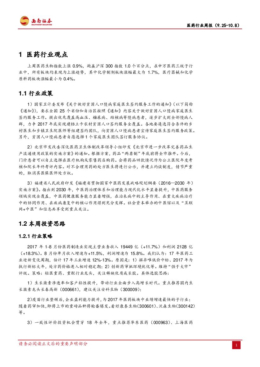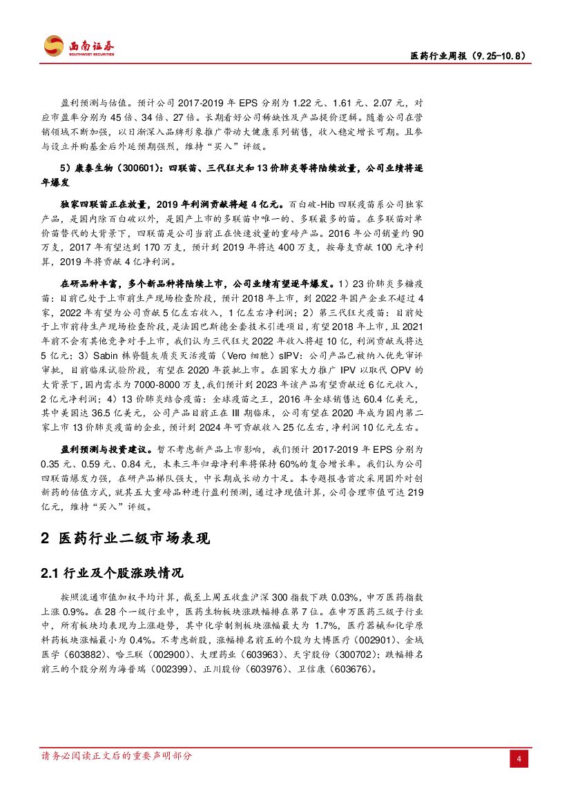 西南证券:医药行业周报:首选估值切换高成长标的,推荐三诺生物、长春高新、华东医药等.pdf