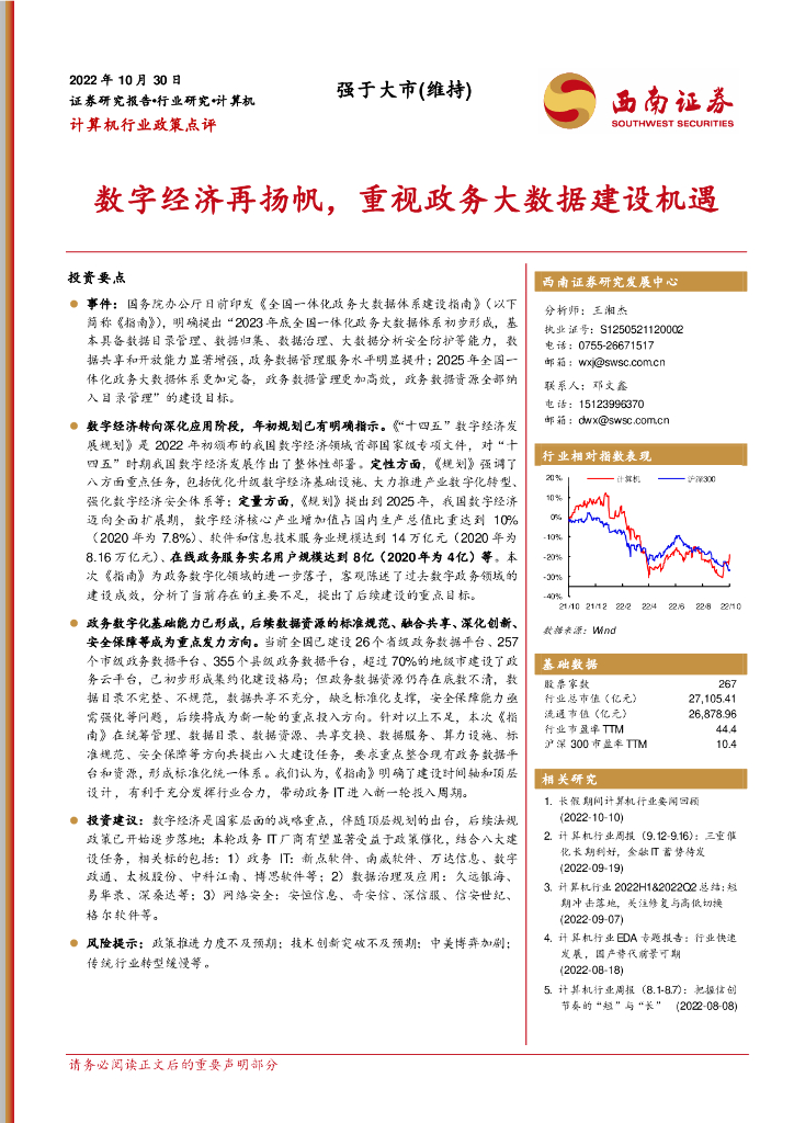西南证券:计算机行业政策点评:数字经济再扬帆,重视政务大数据建设机遇.pdf