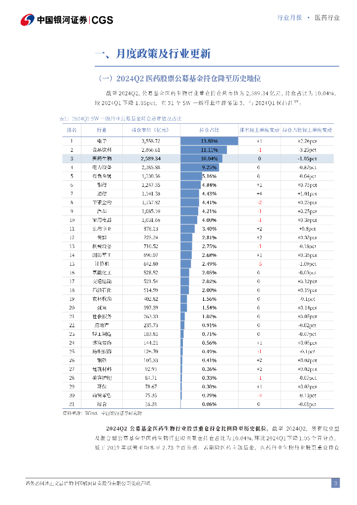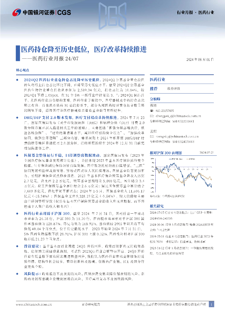 中国银河:医药行业月报24/07:医药持仓降至历史低位,医疗改革持续推进.pdf