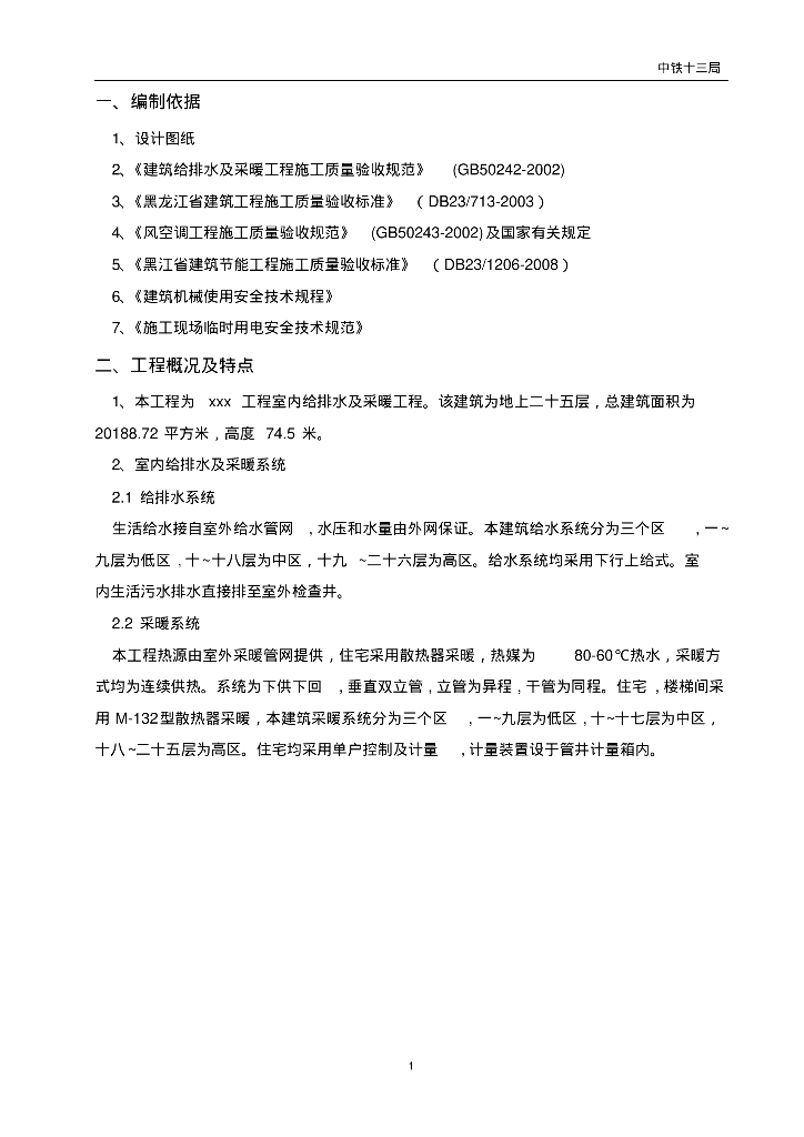 [黑龙江]高层(25层)居民楼室内给排水及采暖工程.pdf