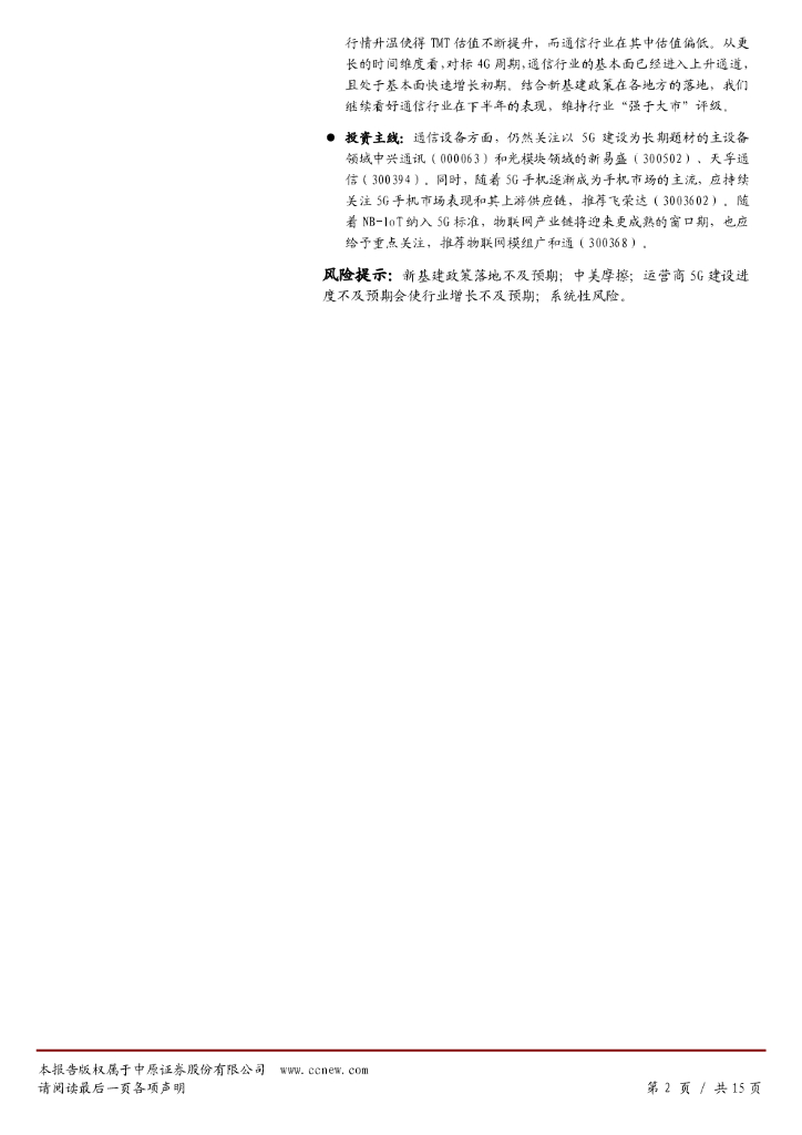 中原证券:通信行业月报:行业基本面进入上升通道,聚焦5G和物联网投资机会.pdf
