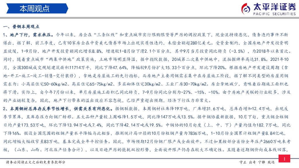 太平洋证券:钢铁周报:地产拿地与开工大幅下滑,严重影响钢材需求.pdf