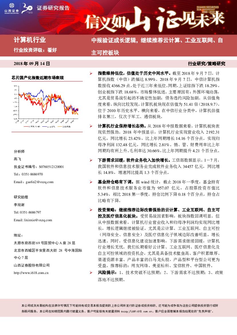 山西证券:计算机行业研究:中报验证成长逻辑,继续推荐云计算、工业互联网、自主可控板块.pdf