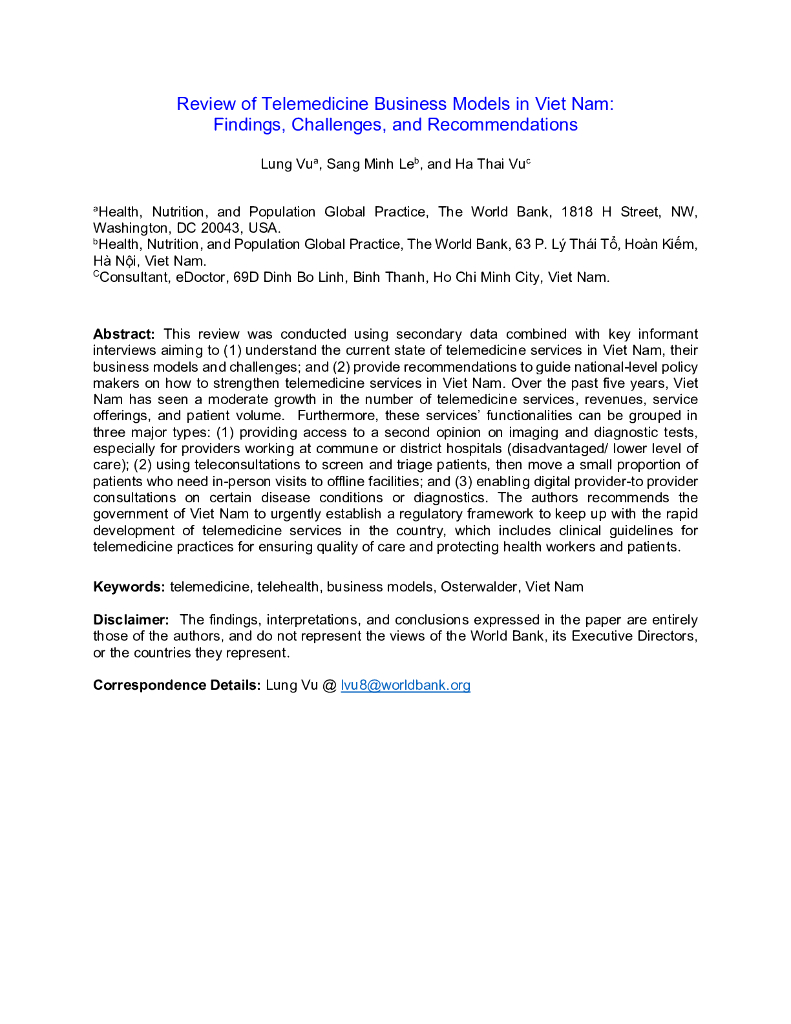 世界银行:2024越南远程医疗商业模式综述:发现、挑战和建议报告(英文版).pdf