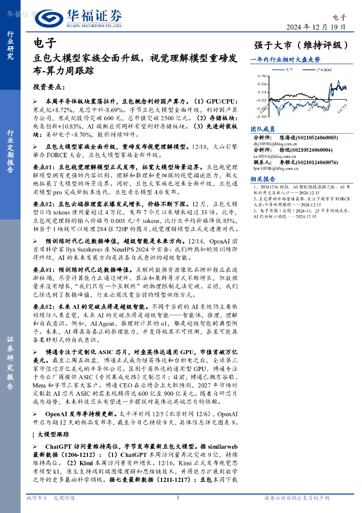 华福证券:电子行业算力周跟踪:豆包大模型家族全面升级,视觉理解模型重磅发布.pdf