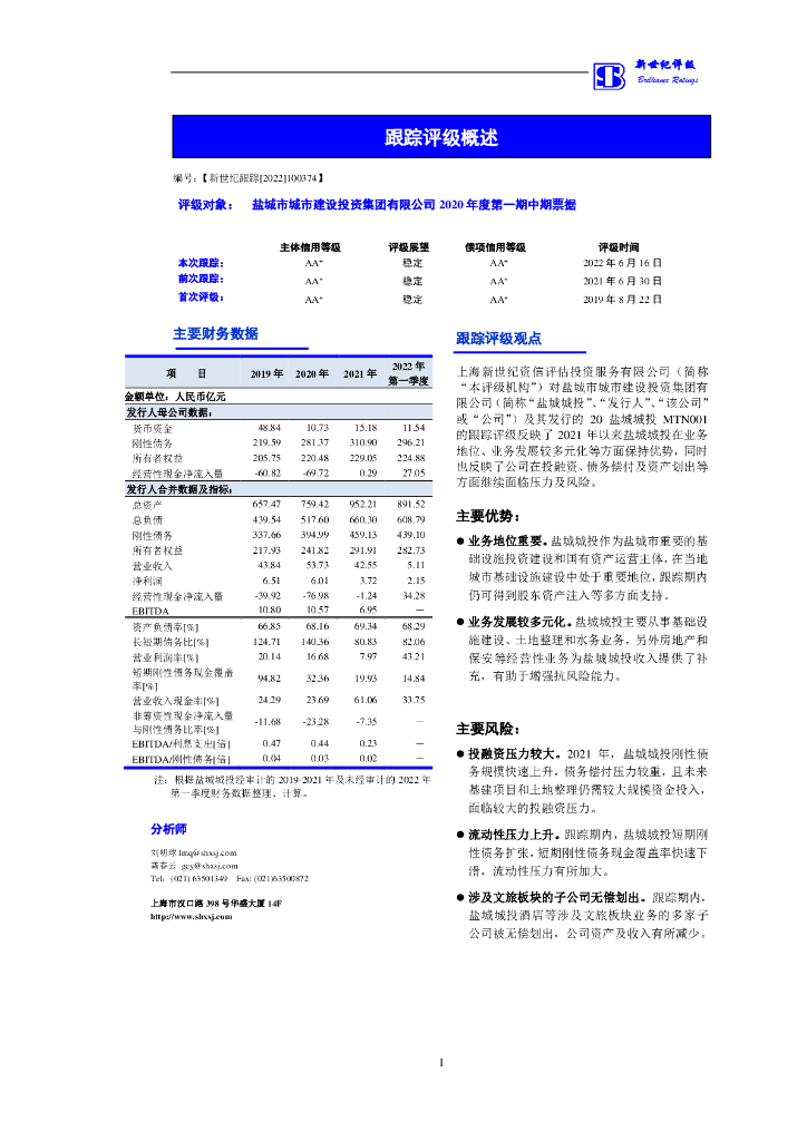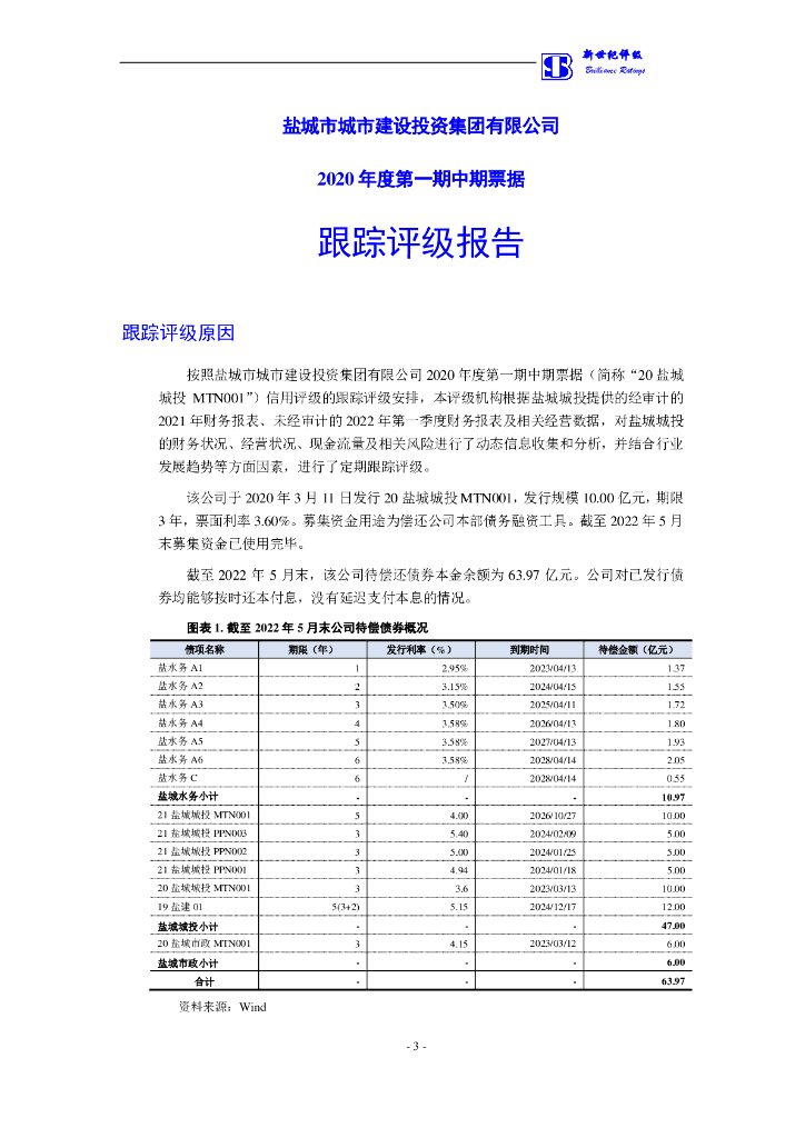 新世纪:盐城市城市建设投资集团有限公司2020年度第一期中期票据跟踪评级报告.pdf
