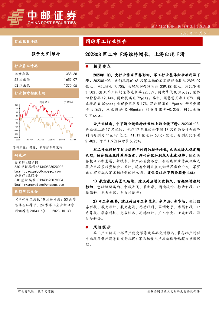 中邮证券:国防军工行业报告:2023Q3军工中下游维持增长,上游出现下滑.pdf