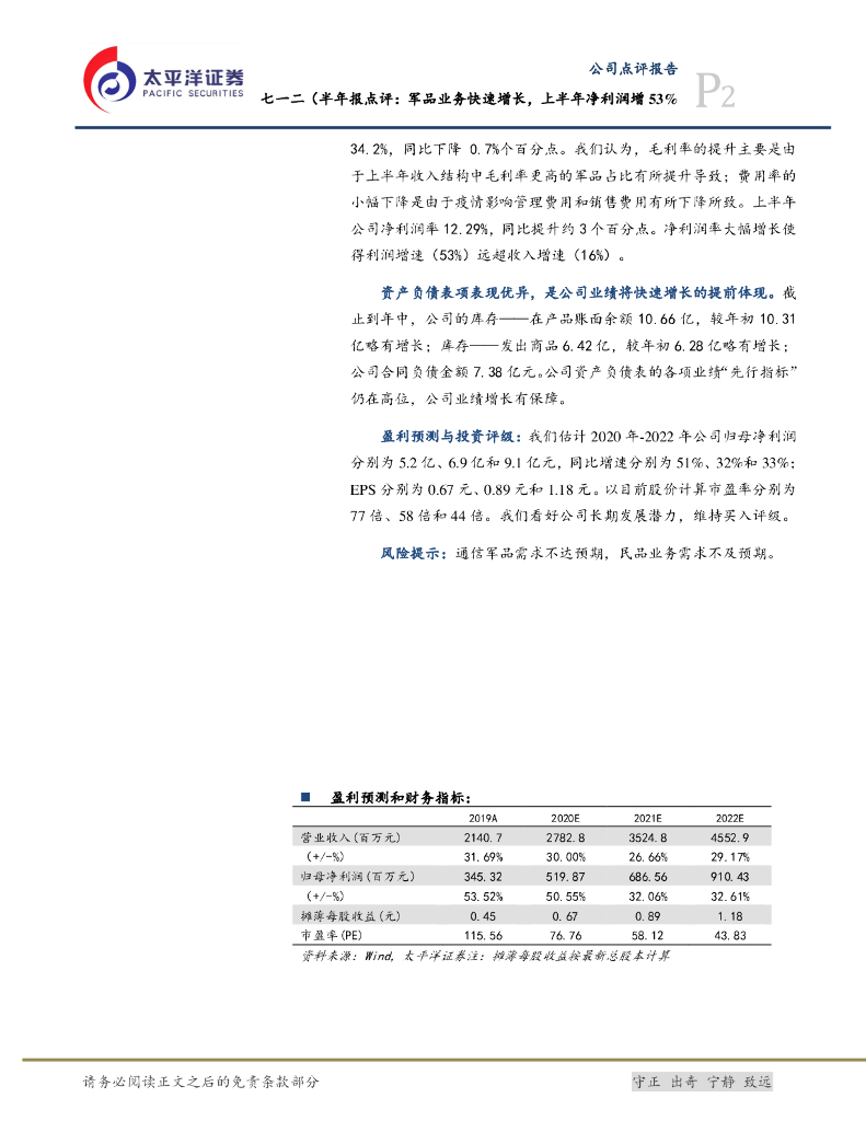 太平洋证券:七一二半年报点评:军品业务快速增长,上半年净利润同比增53%.pdf