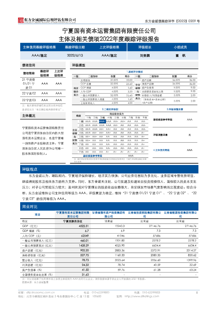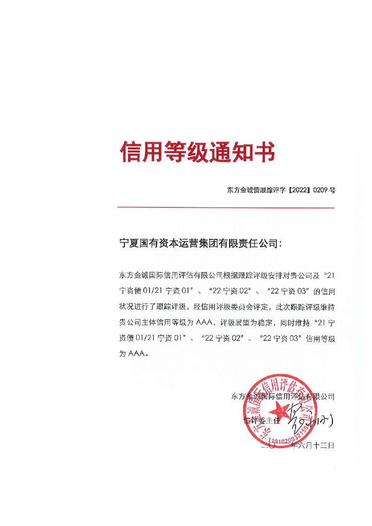 东方金诚:宁夏国有资本运营集团有限责任公司主体及相关债项2022年度跟踪评级报告.pdf