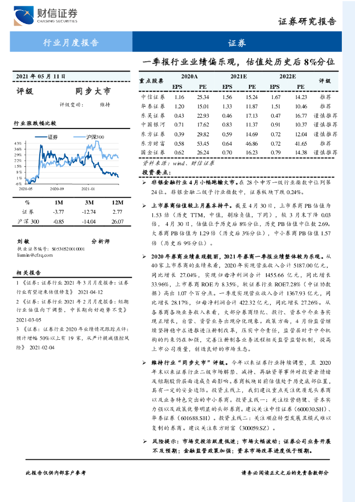 财信证券:证券行业月度报告:一季报行业业绩偏乐观,估值处历史后8%分位.pdf