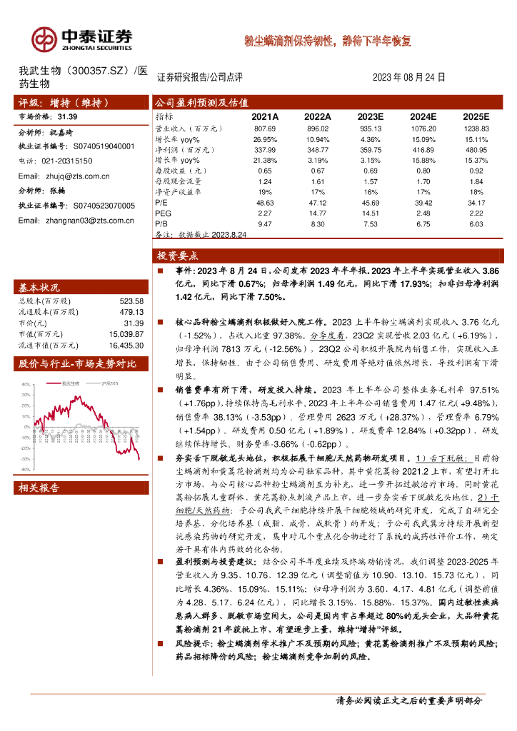 中泰证券:我武生物(300357)-粉尘螨滴剂保持韧性,静待下半年恢复.pdf
