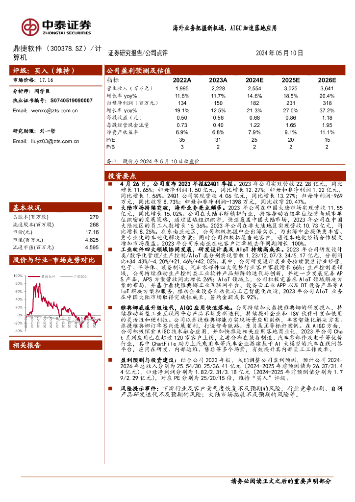 中泰证券:鼎捷软件(300378)-海外业务把握新机遇,AIGC加速落地应用.pdf
