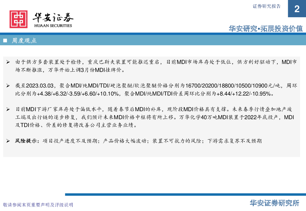 华安证券:基础化工:万华化学基本面周度动态跟踪:MDI供给受影响,万华上调3月挂牌价.pdf