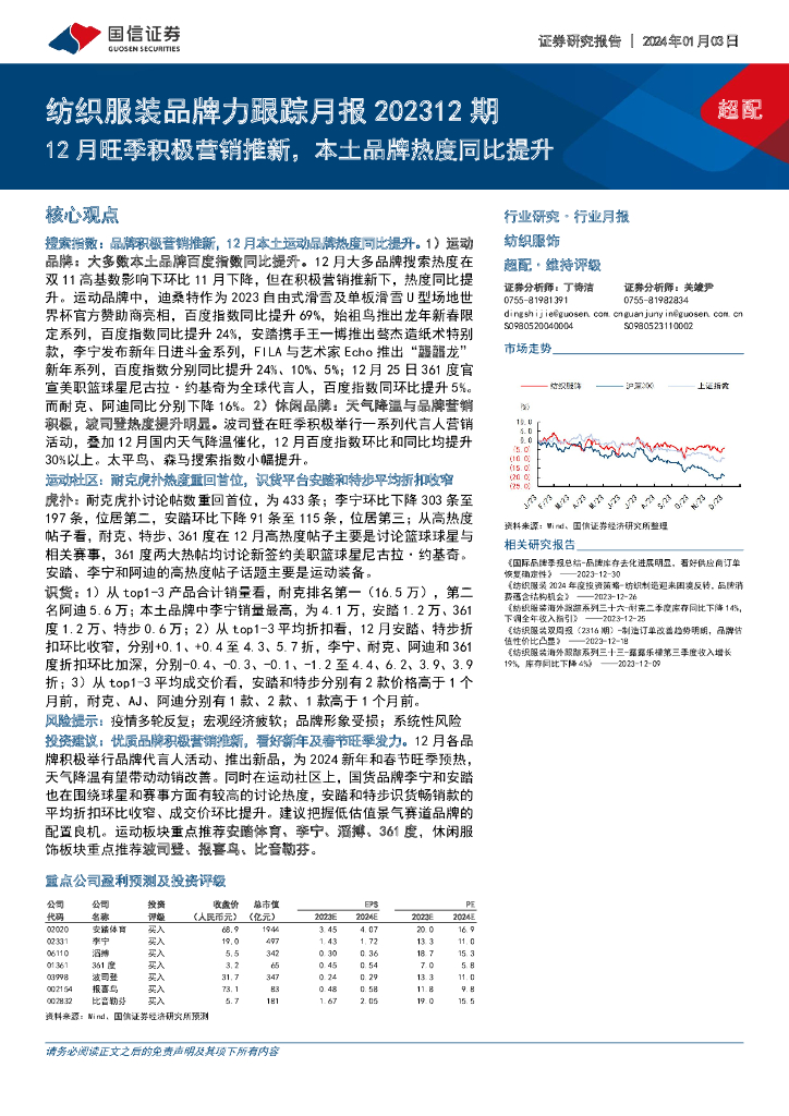 国信证券:纺织服装品牌力跟踪月报202312期:12月旺季积极营销推新,本土品牌热度同比提升.pdf