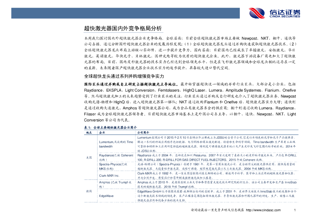 信达证券:机械设备行业周报:超快激光器国内外竞争格局分析.pdf