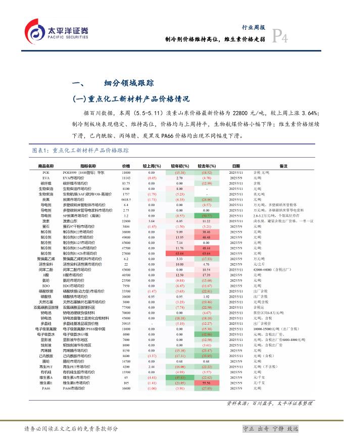 太平洋证券:化工行业新材料周报:制冷剂价格维持高位,维生素价格走弱.pdf