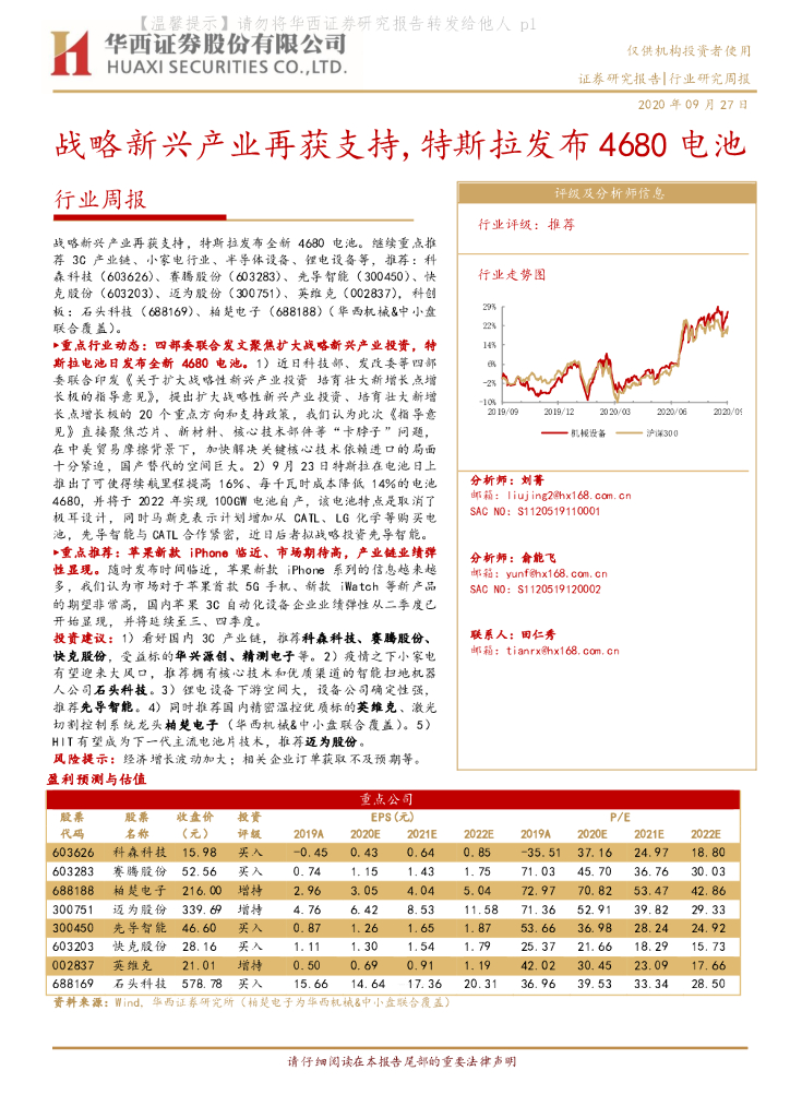 华西证券:机械设备行业周报:战略新兴产业再获支持,特斯拉发布4680电池.pdf