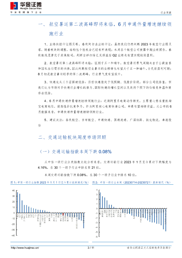 华金证券:交通运输行业周报:航空暑运第二波高峰即将来临,6月申通件量增速继续领跑行业.pdf