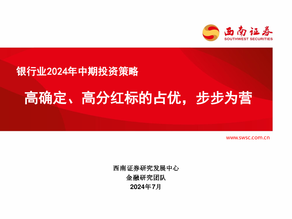 西南证券:银行业2024年中期投资策略:高确定、高分红标的占优,步步为营.pdf