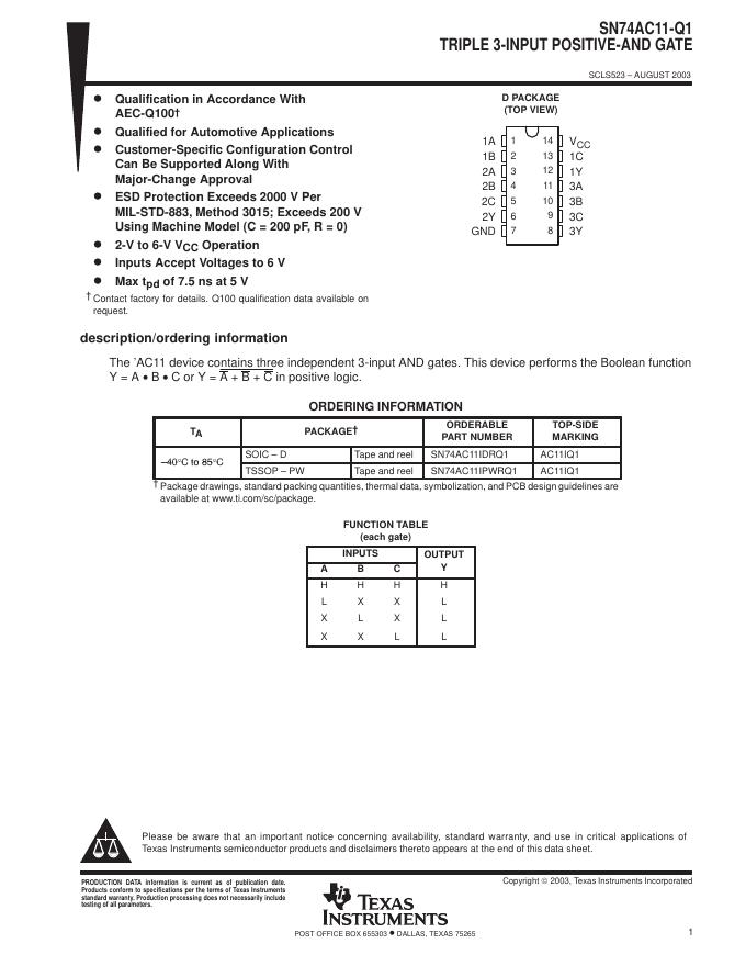TEXAS INSTRUMENTS SN74AC11-Q1 数据手册.pdf