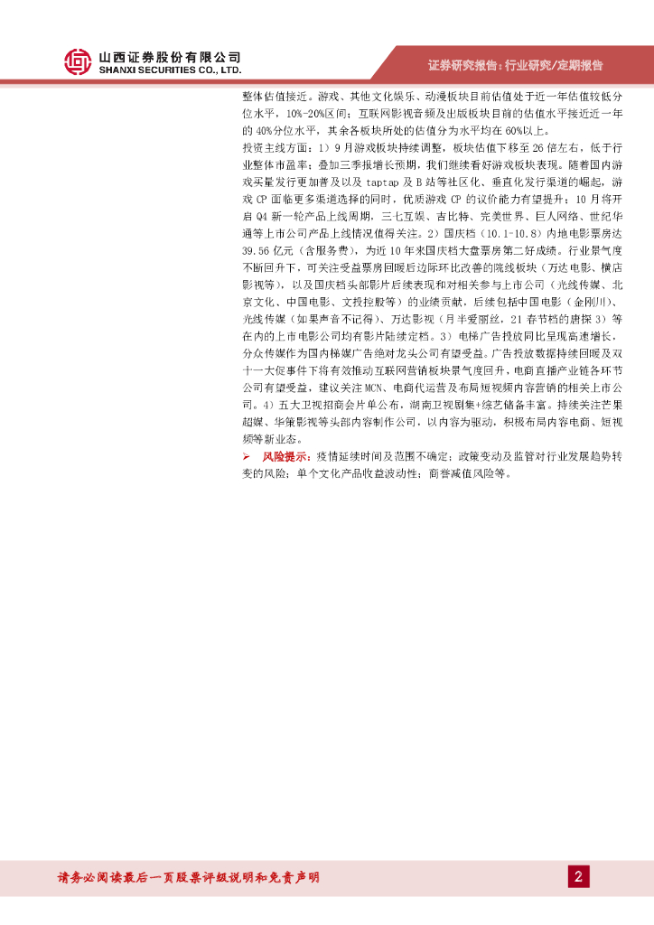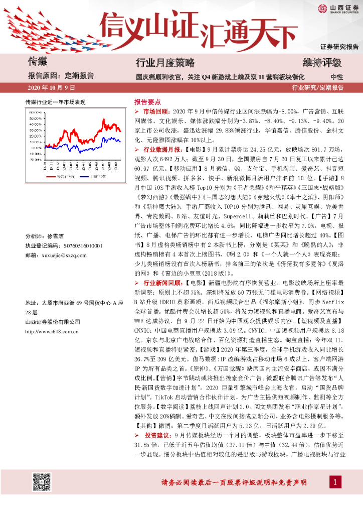 山西证券:传媒行业月度策略:国庆档顺利收官,关注Q4新游戏上线及双11营销板块催化.pdf