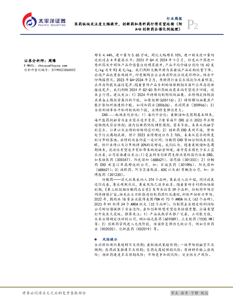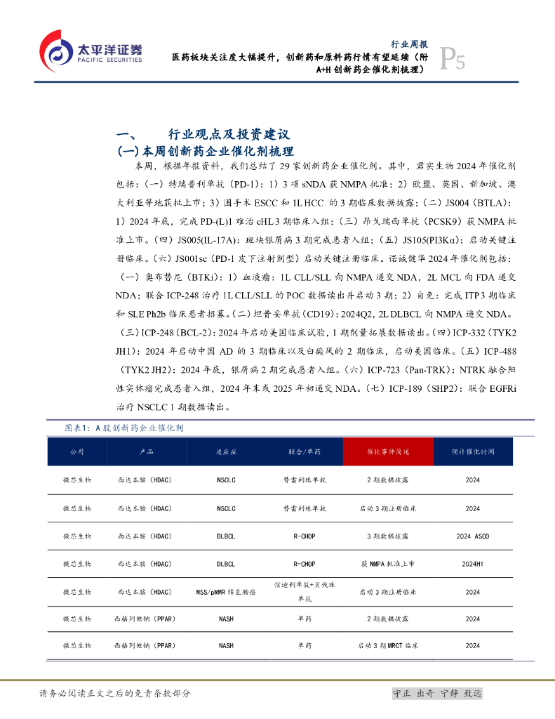 太平洋证券:医药行业周报:医药板块关注度大幅提升,创新药和原料药行情有望延续(附A+H创新药企催化剂梳理).pdf