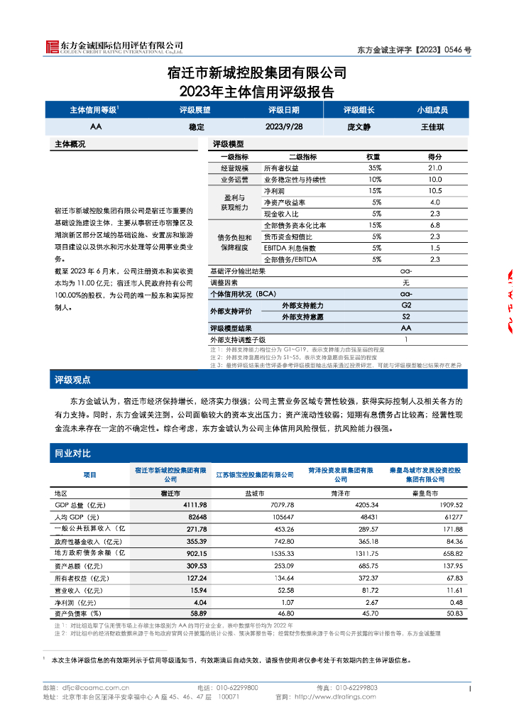 东方金诚:宿迁市新城控股集团有限公司2023年主体信用评级报告.pdf