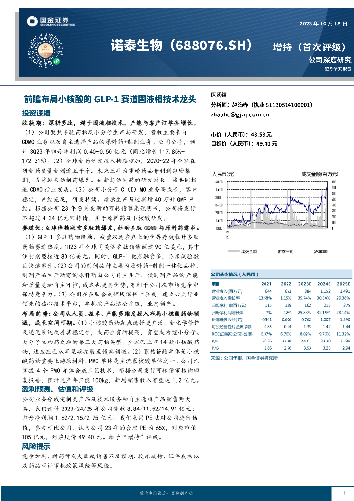 国金证券:诺泰生物(688076)-公司深度研究:前瞻布局小核酸的GLP-1赛道固液相技术龙头.pdf