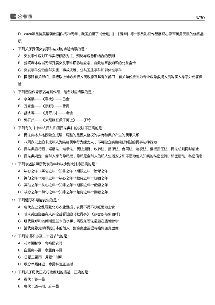 2021年湖北公务员考试行测试题(考生回忆版).pdf