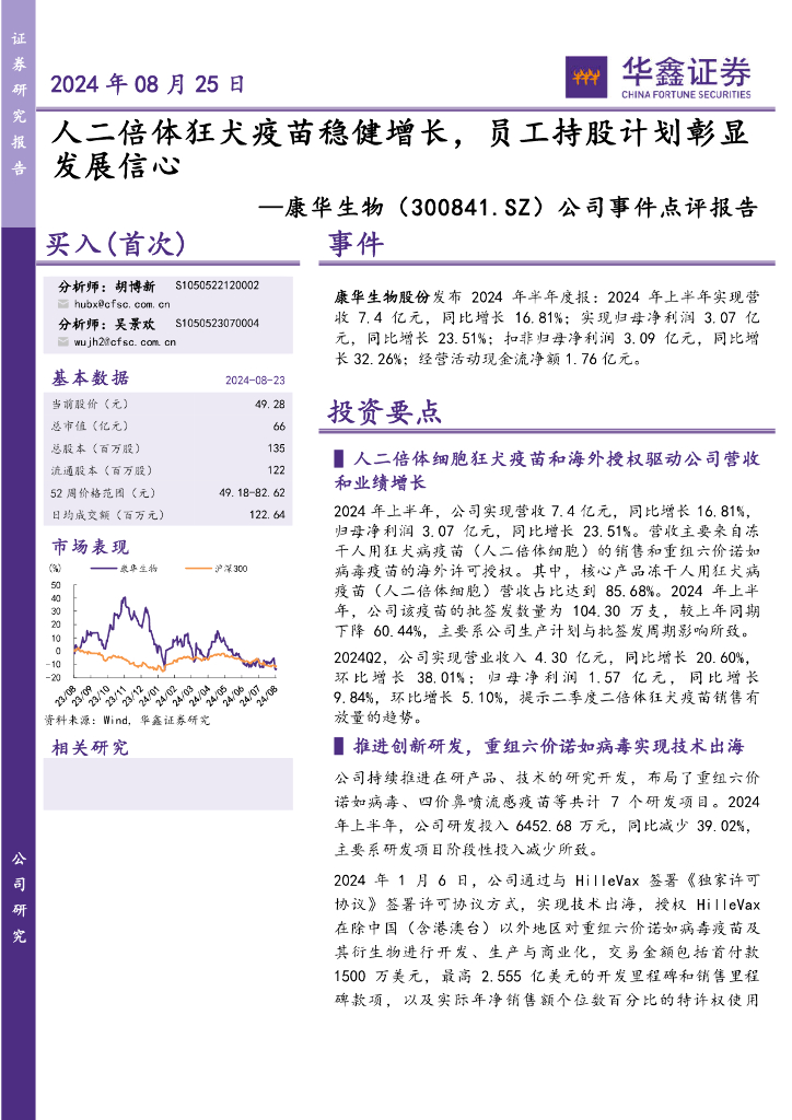 华鑫证券:康华生物(300841)-公司事件点评报告:人二倍体狂犬疫苗稳健增长,员工持股计划彰显发展信心.pdf