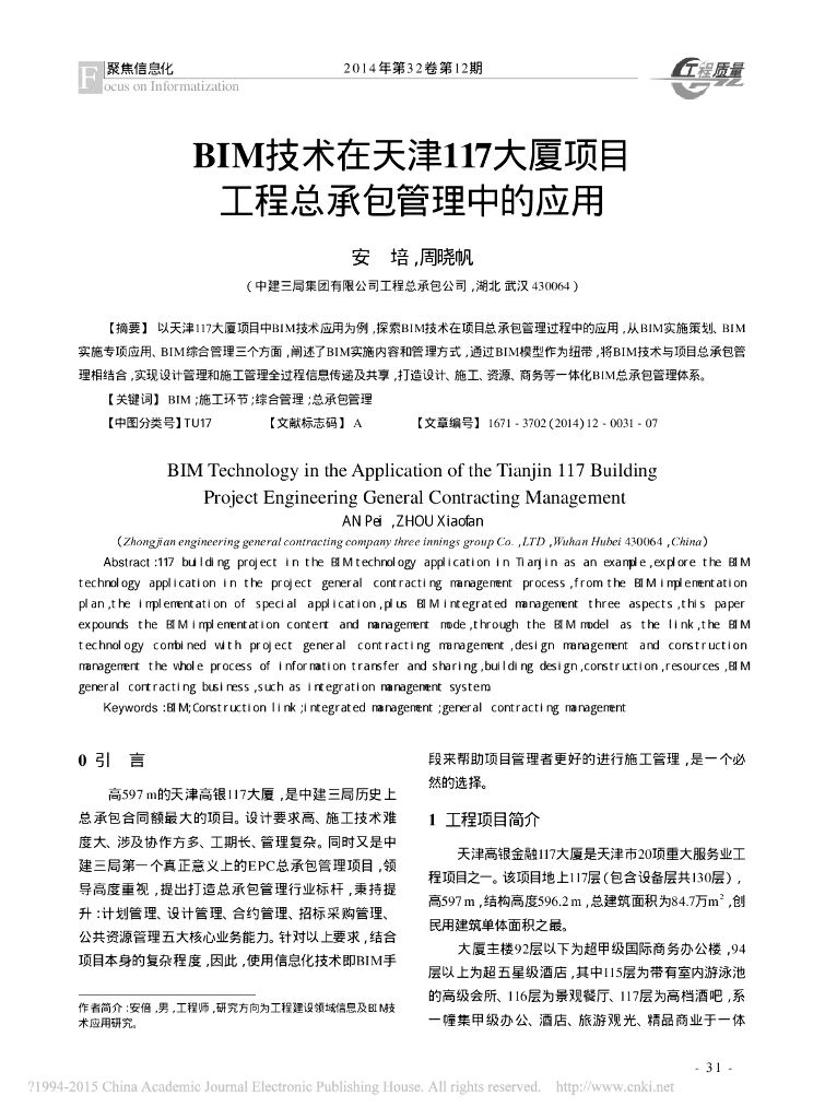 BIM技术在天津117大厦项目工程总承包管理中的应用.pdf