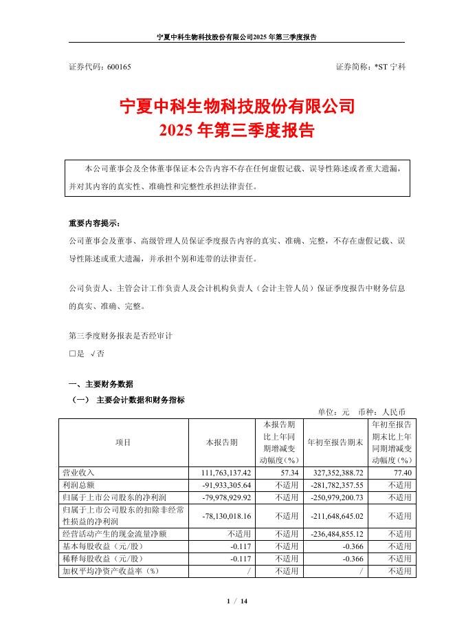 600165-*ST宁科:*ST宁科2025年第三季度报告.pdf