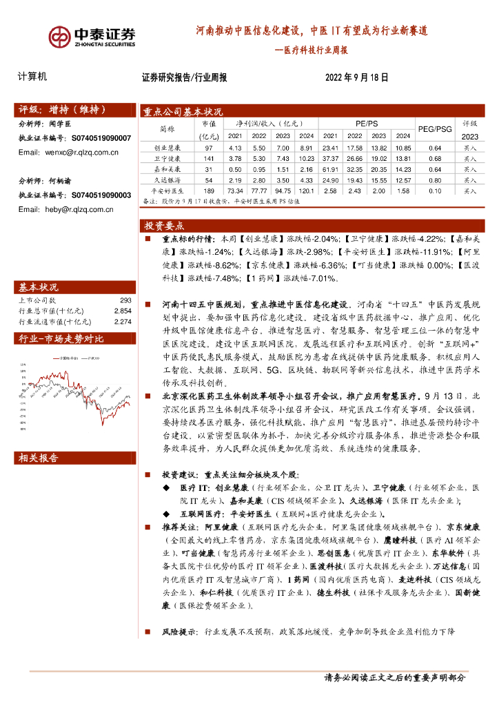 中泰证券:医疗科技行业周报:河南推动中医信息化建设,中医IT有望成为行业新赛道.pdf