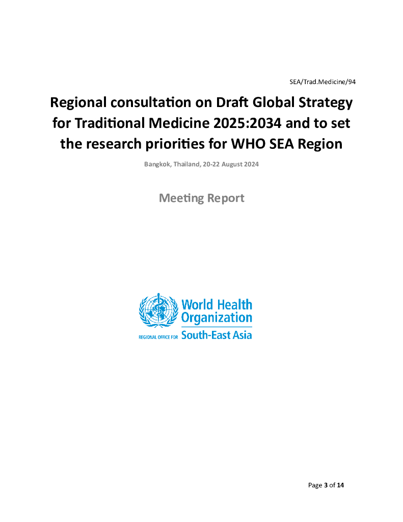 WHO世界卫生组织:《2025-2034年全球传统医学战略》区域磋商:确定世卫组织东南亚区域的研究报告(英文版).pdf