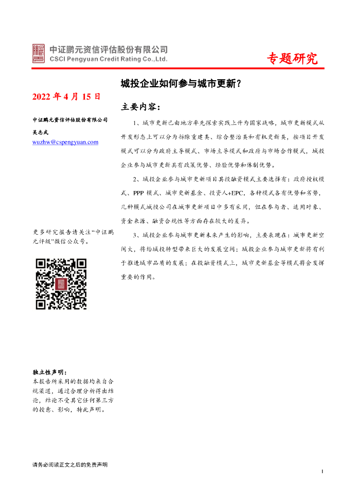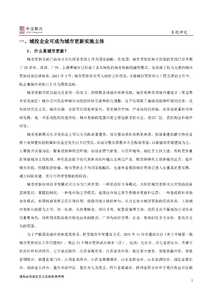 中证鹏元:城投企业如何参与城市更新?.pdf