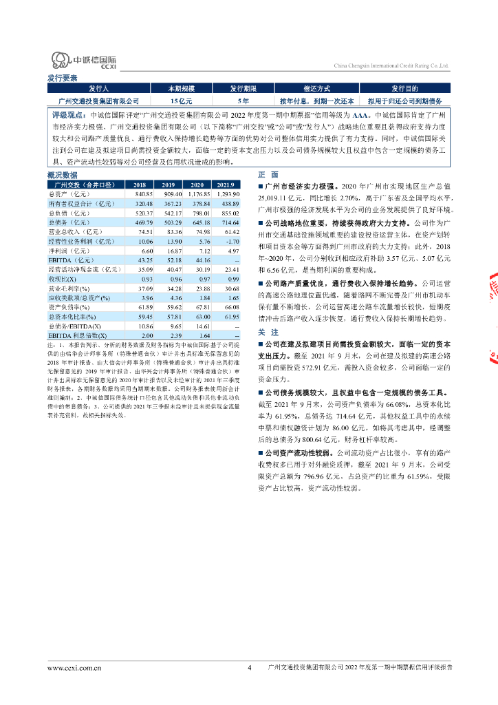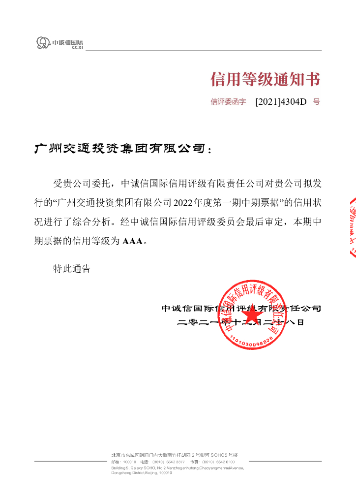 中诚信:广州交通投资集团有限公司2022年度第一期中期票据信用评级报告.pdf