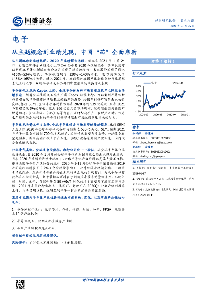 国盛证券:电子行业周报:从主题概念到业绩兑现,中国“芯”全面启动.pdf