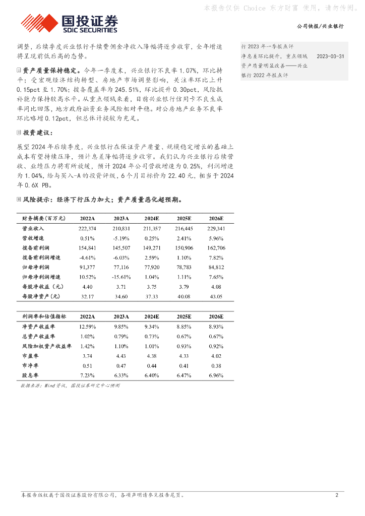 国投证券:兴业银行2024年一季报点评:息差降幅收窄,业绩增速回升.pdf
