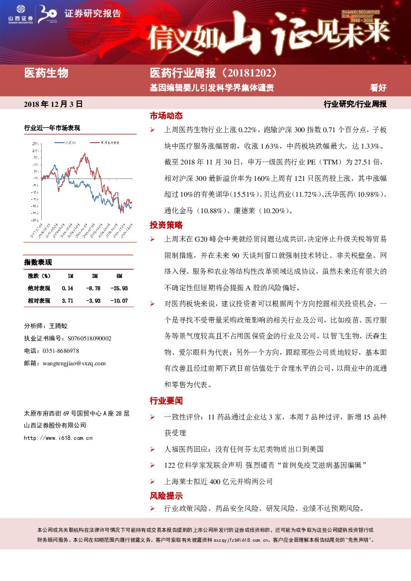 山西证券:医药行业周报:基因编辑婴儿引发科学界集体谴责.pdf