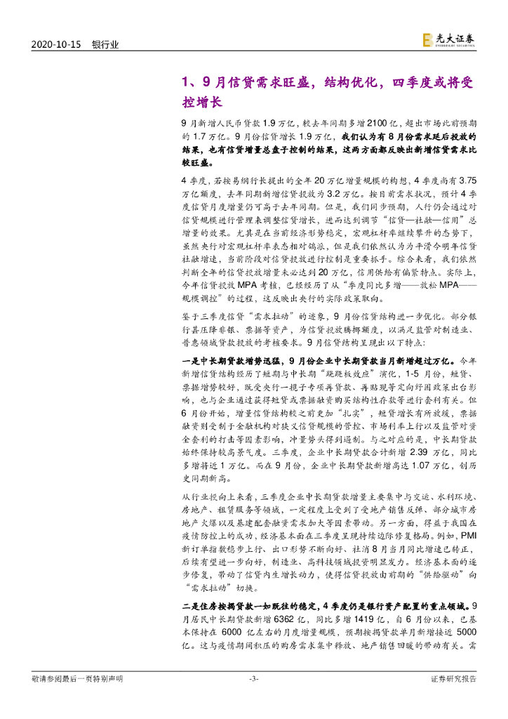 光大证券:银行业2020年9月金融数据点评:信贷需求旺盛,后续受控增长,社融仍具潜力.pdf