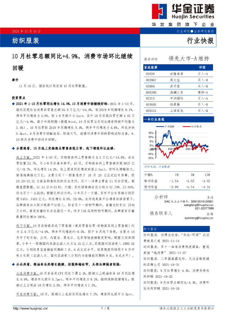 华金证券:纺织服装:10月社零总额同比+4.9%,消费市场环比继续回暖.pdf