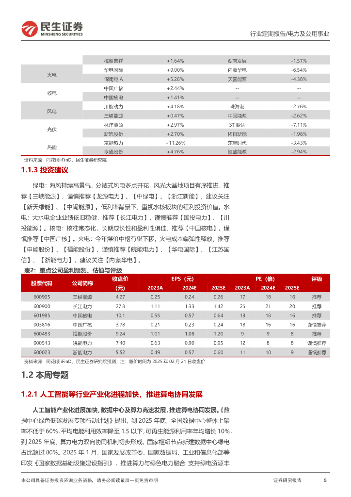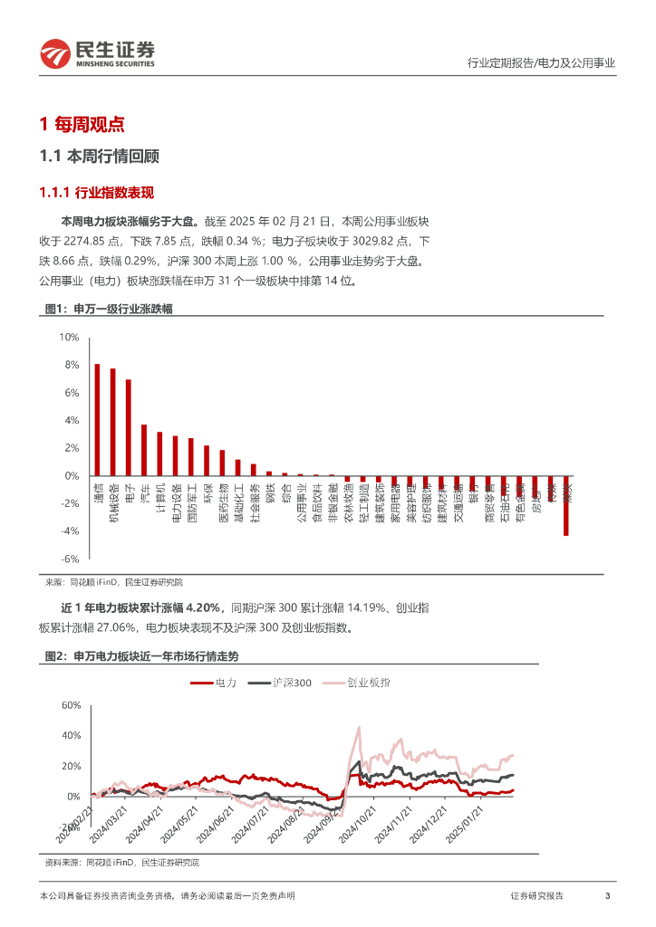 民生证券:电力及公用事业行业周报(25WK08):算力带动电力需求,绿电促进算电协同发展.pdf