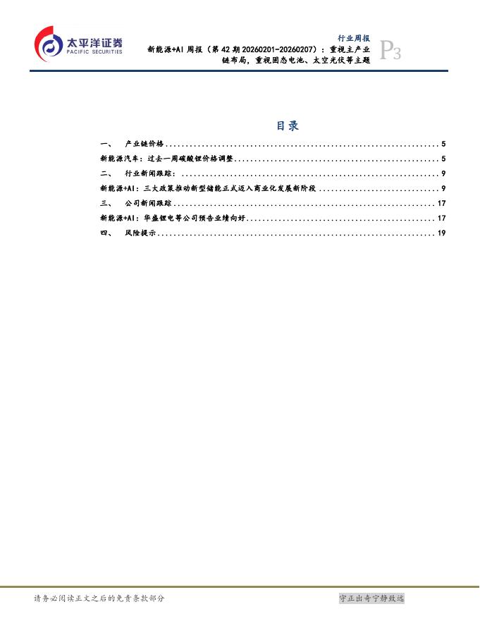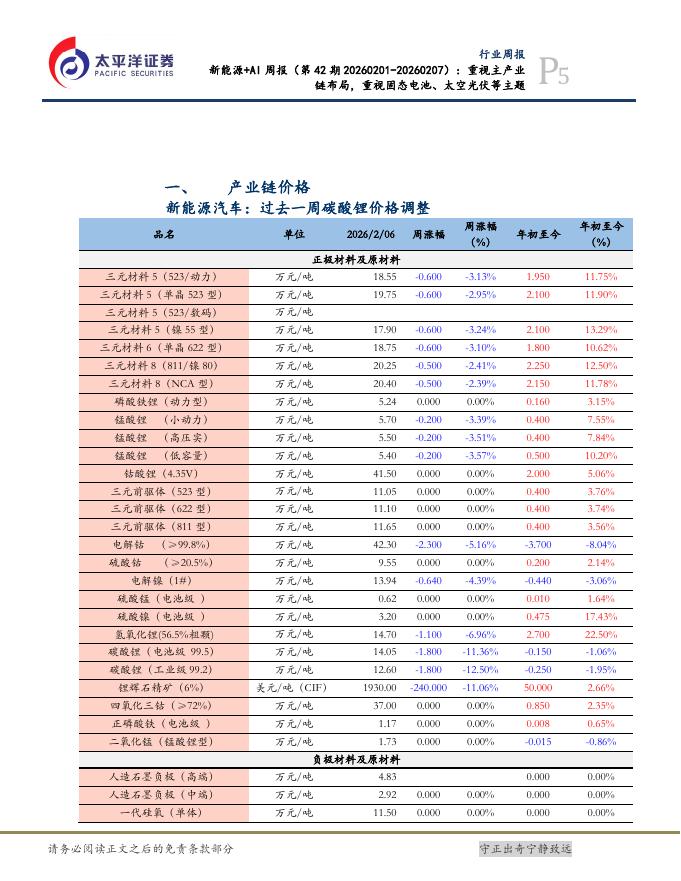 太平洋证券:新能源+AI行业周报(第42期20260201-20260207):重视主产业链布局,重视固态电池、太空光伏等主题.pdf