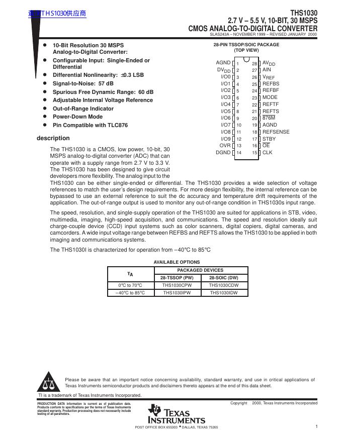 TEXAS INSTRUMENTS THS1030 数据手册.pdf
