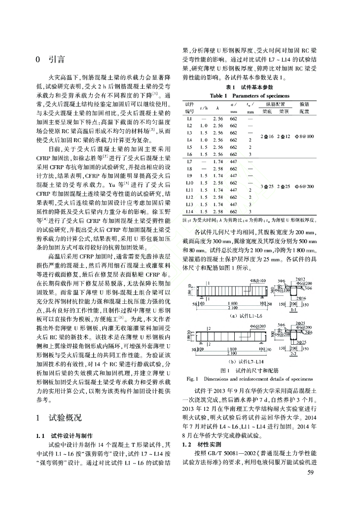 薄壁U形钢板加固受火后钢筋混凝土梁受力.pdf