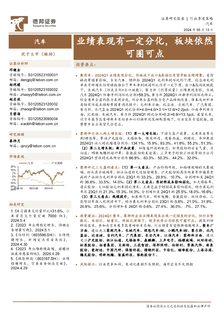 德邦证券:汽车行业季度策略:业绩表现有一定分化,板块依然可圈可点.pdf